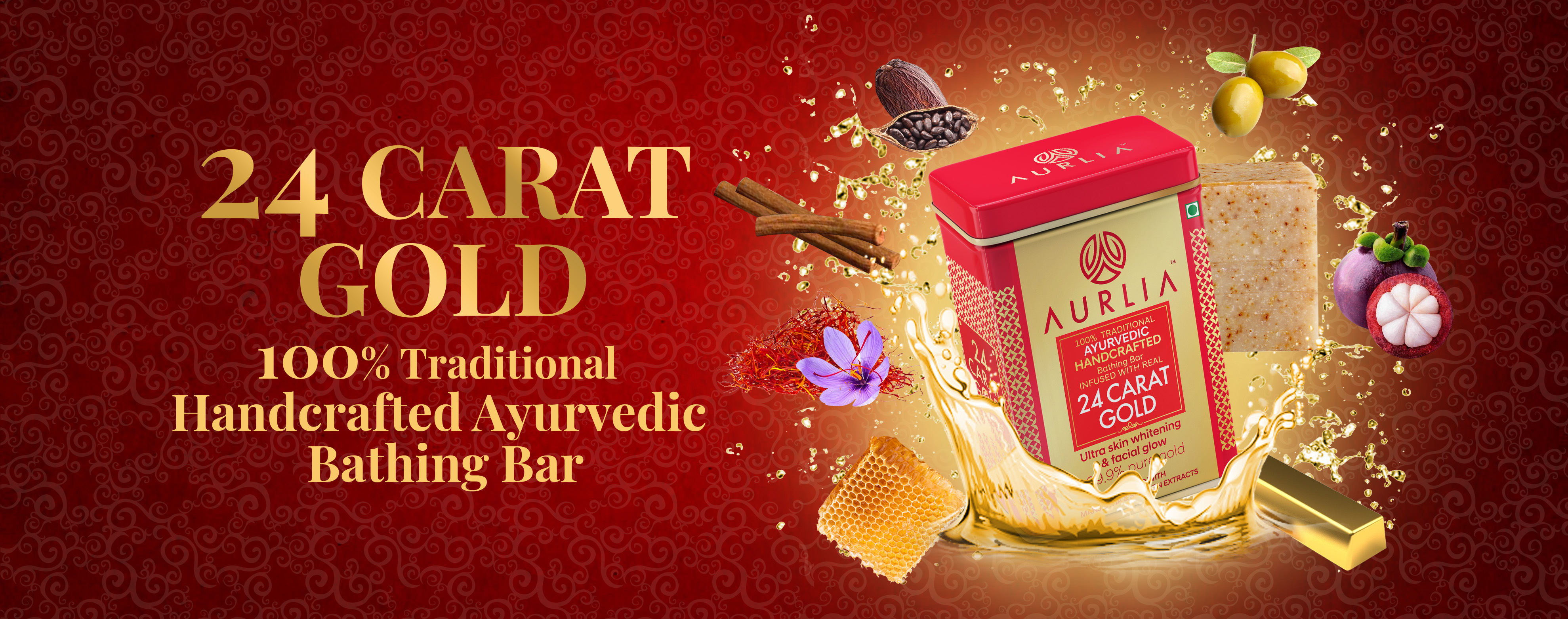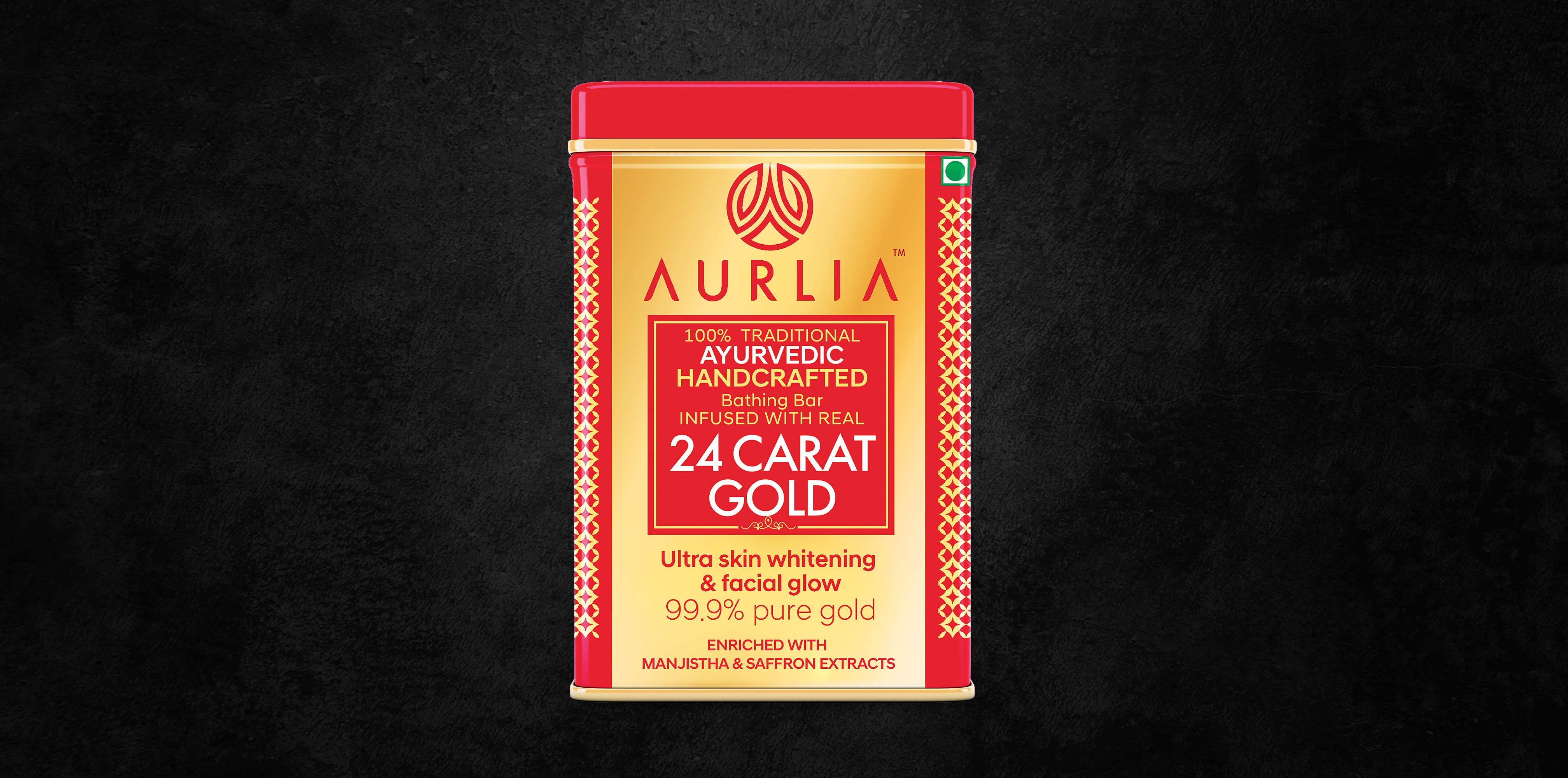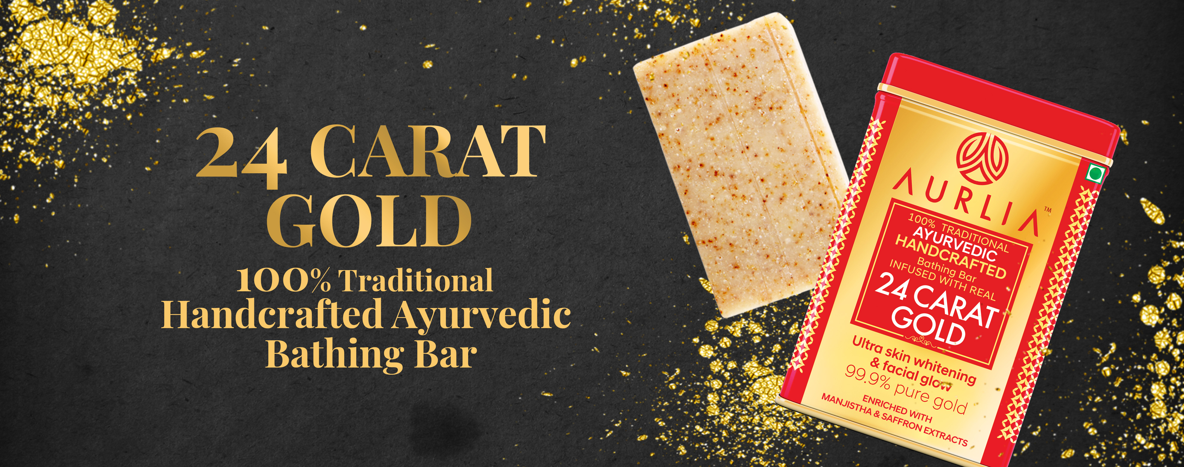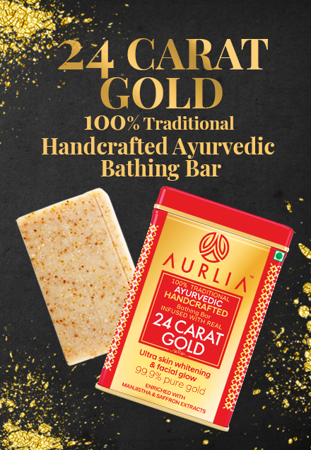 The synergistic blend of 24 carat Gold and herbs like Saffron and Manjistha in Aurlia 24 carat gold bathing bar.