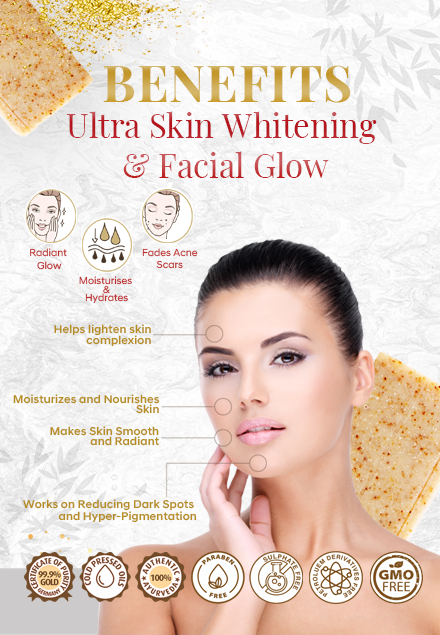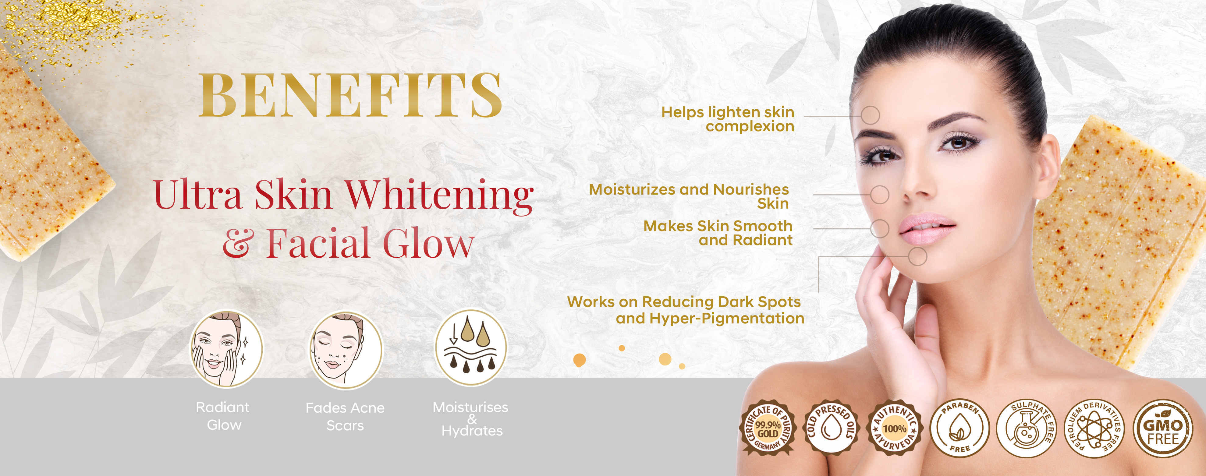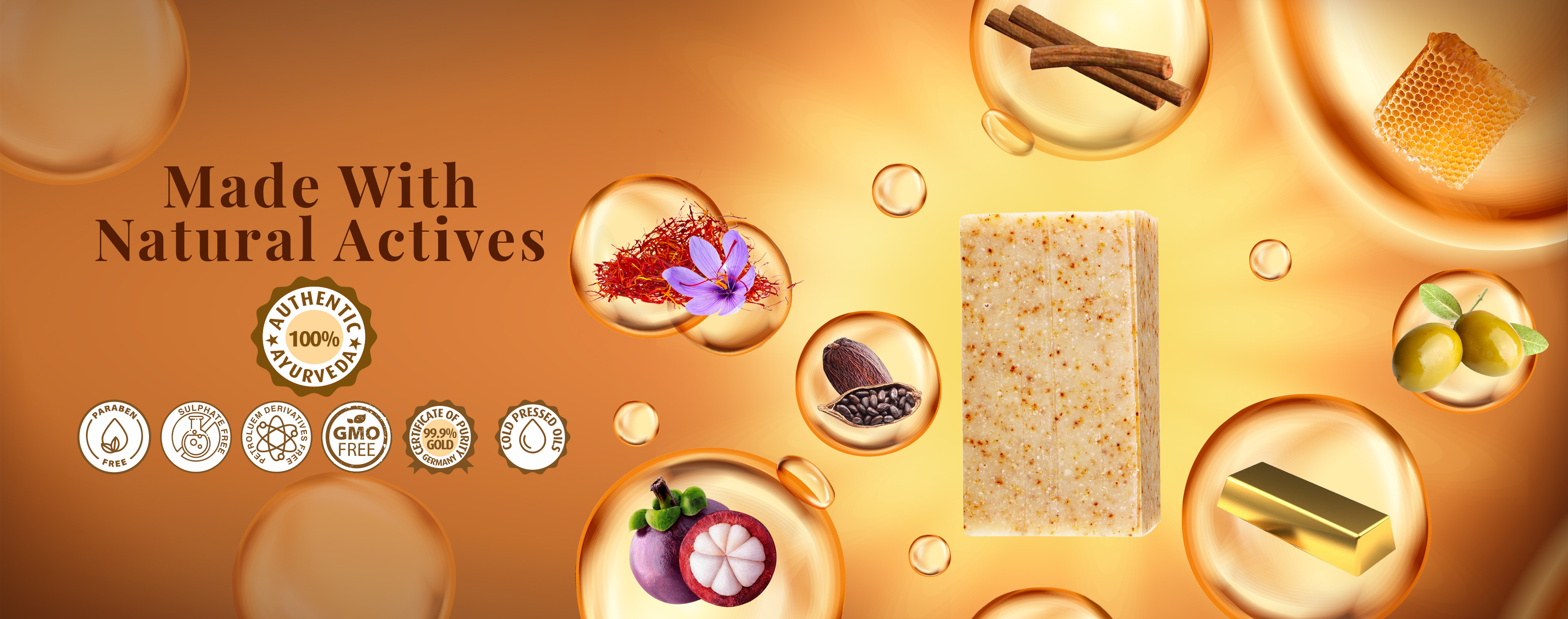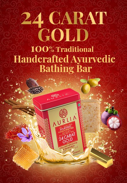 The synergistic blend of 24 carat Gold and herbs like Saffron and Manjistha in Aurlia 24 carat gold bathing bar.